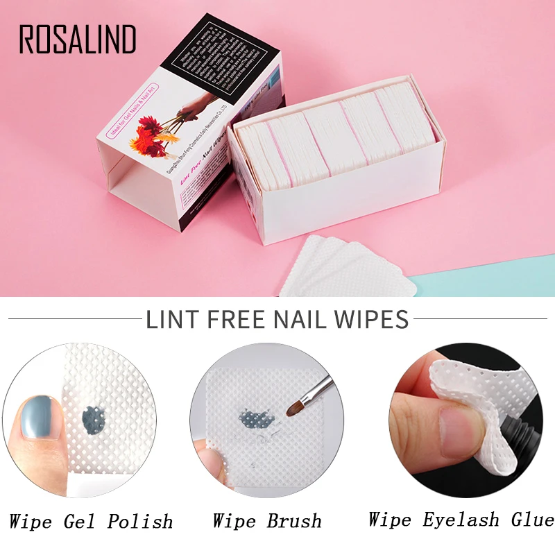 ROSALIND Cleaner Nail Tool Polish Remover 100% Cotton Cleaner Lint-Free Wipes for nail art Manicure UV Gel Polish Remover